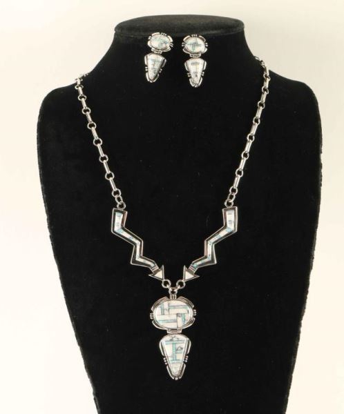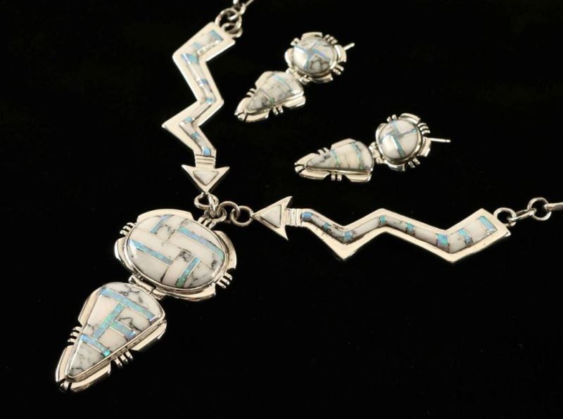 Lot 887 Inlaid Howlite & Opal Earrings & Necklace Set