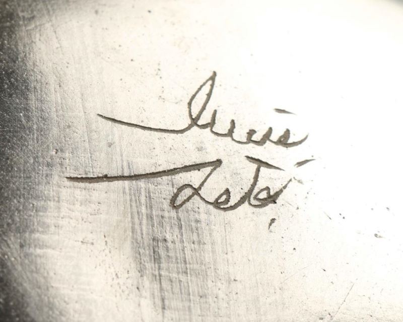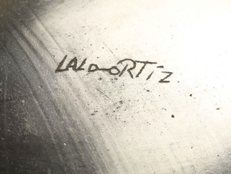 Both with geometric designs, measure 10'x13" and 10"x12". Signed Luis Leta and Lalo Ortiz.