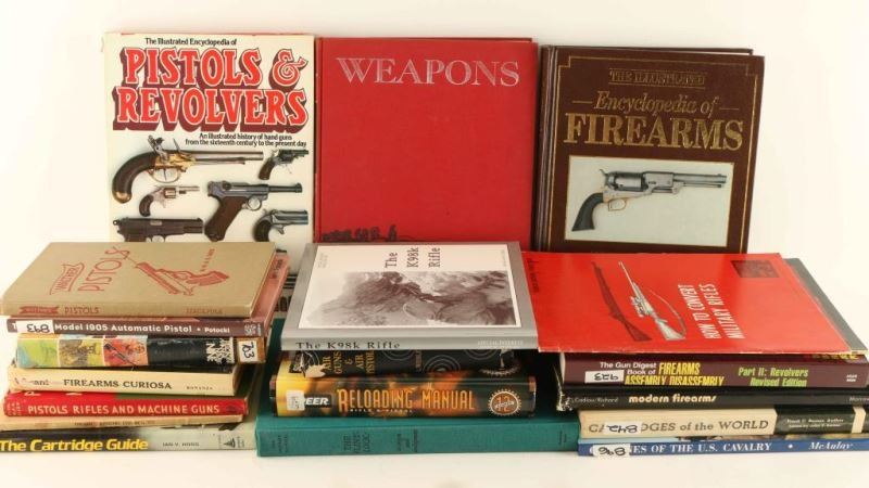 Including: Colt 1905 Automatic, The K98k Rifle, Carbines of the US Cavalry, Encyclopedia of Firearms, Walther Pistols, Pistols & Revolvers, Weapons Pictorial History, Modern Firearms (2), The Fling-Lock, Firearms Assembly-Dis-Assembly Vol. II, Cartridges of the World, Air Guns and Air Pistols, Pistols-Rifles-Machineguns, The Cartridge Guide, Firearms Curiosia, Firearm Silencers Vol. 1, Speer Reloading Manual (9&12), and How to Convert Military Rifles.