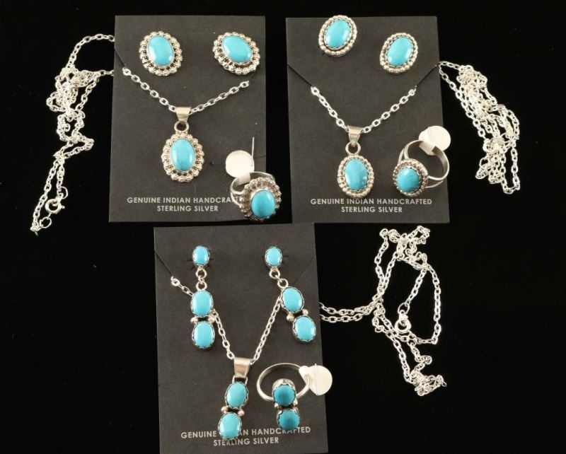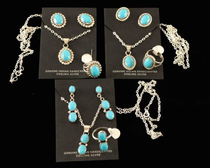 Lot 1022a Three Sets of Turquoise & Silver Navajo Jewelry