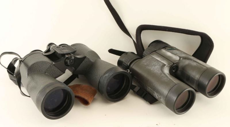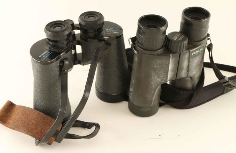 Pentax 10x42 DCF and Bushnell Sportsview 10x50 both with carrying cases.