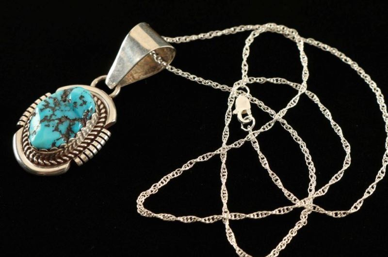 Lot 1043 Sterling Silver & Turquoise Pendant