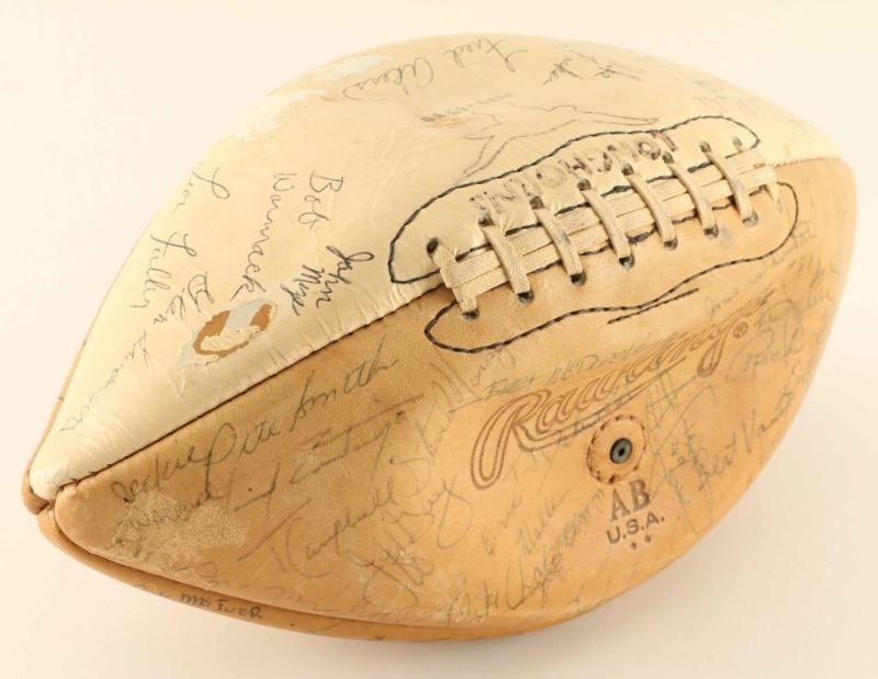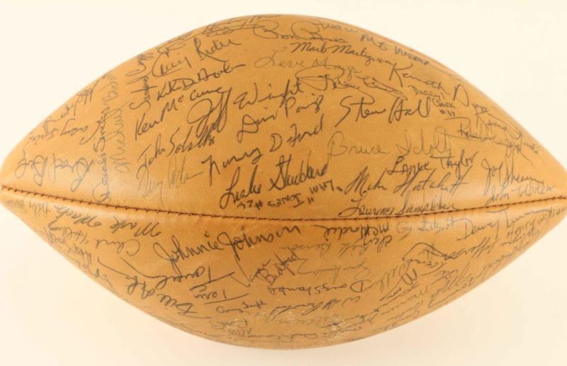 has over 100 team and couch signatures including Steve McMichael, Terry Tauch, Bill Archer, Jonnie Johnson, Vance Bedford, Rick Chapman, Fred Acorn, Les Studdard, amd Mike Baab.