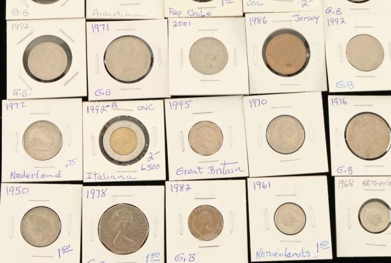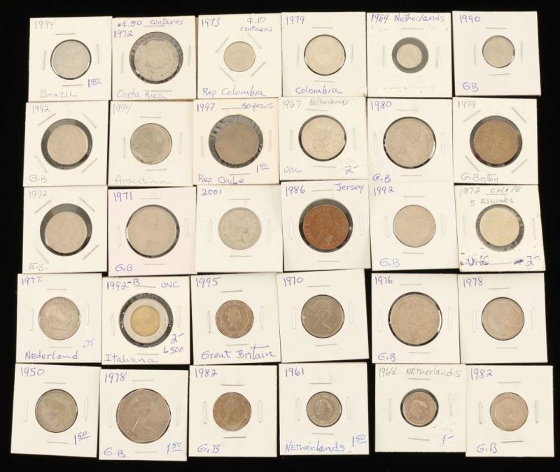 Including coins from the Netherlands, Chile, Great Britain, Columbia and more.