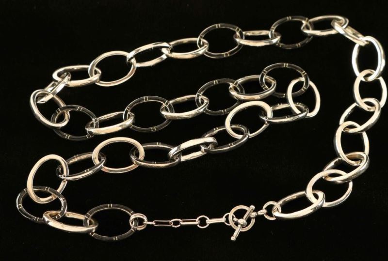 Lot 1115a Onyx Inlaid Silver Link Necklace