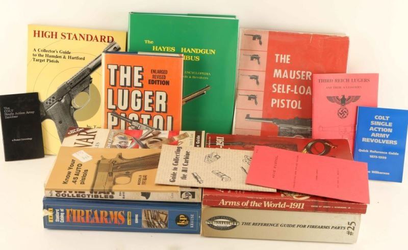 Including; Handgun Encyclopedia Omnibus, Mauser Self Loading Pistol, Luger Pistol, British Enfield Rifles, Civil War Collectibles, Standard Catalog of Firearms, Arm of the World 1911, High Standard Collectors Guide, Exploded Handgun Drawings, Colt Single Action Army Revolver (2), The M1 Rifle, M16 AR-15, Know Your .45 Auto Pistols, Axis Pistols Price Guide, Third Reich Lugers Price Guide, US M1 Garand Rifle in Pictures, Book of the AR-15 (2), Country Profile Croatia, Guide to Collecting the M1 Carbine, and Gun Parts Catalog #25.