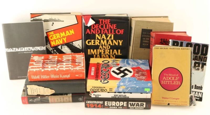 Including; Mein Kampf (English), The German Navy 193 9-1945, The Decline and Fall of Nazi Germany and Imperial Japan, Blood and Water, The Mind of Adolf Hitler, Why Hitler Came to Power, The Rise and Fall of the Third Reich, Bismarcks Relations with England 1871-1890, Catastrophe 1914 Europe Goes to War, Nazi Ideology and the Holocaust, An Illustrated History of the Gestapo, Hitler's Pope.