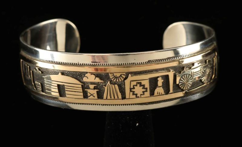 Lot 1154a Navajo Gold & Silver Storyteller Cuff Bracelet