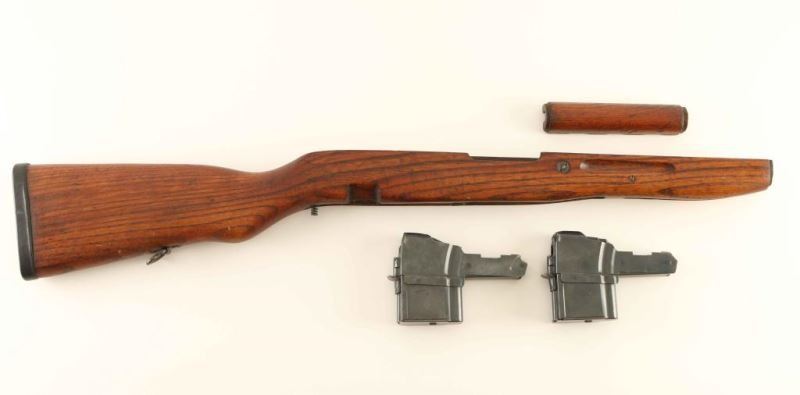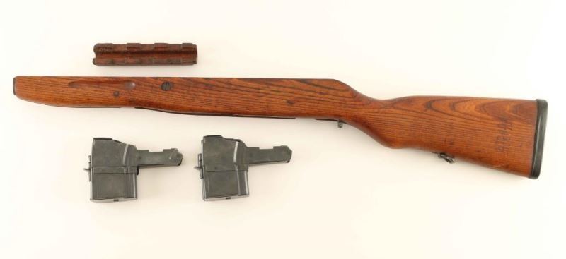 Original two-piece wood stock set with blade style bayonet cut. Also includes two detachable 10 round magazines.
