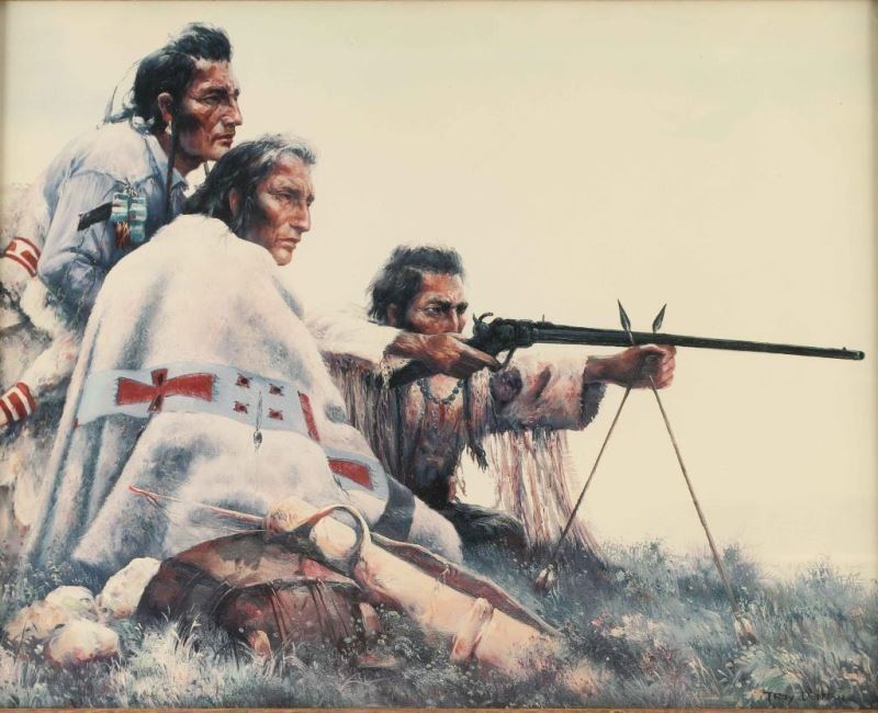 "The Long Shot", measures 15 1/2"x19 1/2" in wood frame, signed lower right.