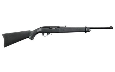 Ruger, 10/22 Carbine, Semi-Automatic Rifle, 22 LR, 18.5" Barrel, Satin Black Finish, Alloy Steel, Black Synthetic Stock, Adjustable Rear and Gold Bead Front Sight, 10Rd