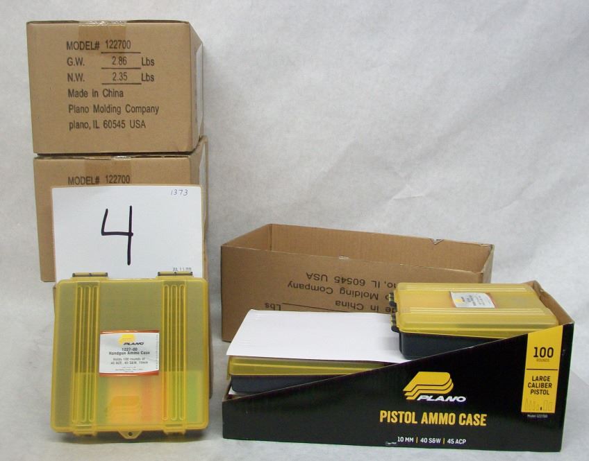 PLANO HANDGUN AMMO CASES. EACH ONE HOLDS 100 RDS .45 ACP, 40 S& W OR 10MM. 24 CASES NEW IN THE BOXES.