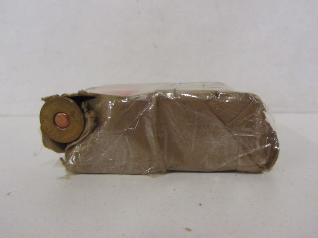 10 ROUNDS OF KYNOCH .577 SOLID SNYDER AMMUNITION IN BOX WITH TWO OPENINGS AND MOSTLY PLASTIC WRAPPED