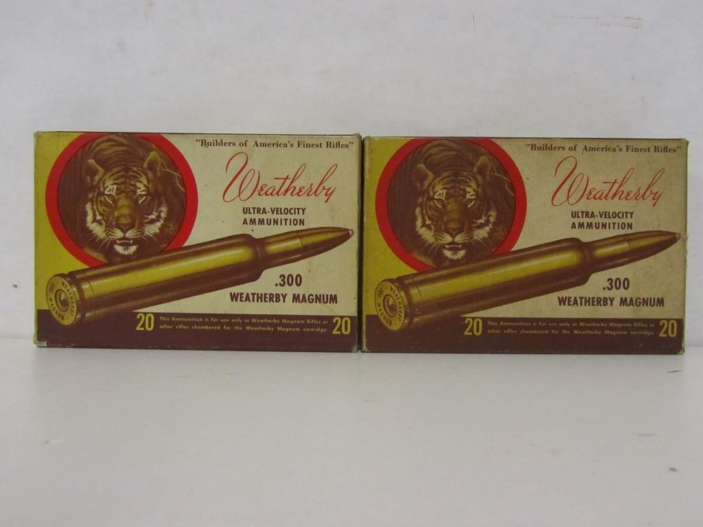 38 ROUNDS OF 300 WEATHERBY MAGNUM AND 2 BRASS PIECES, IN TWO WEATHERBY BOXES
