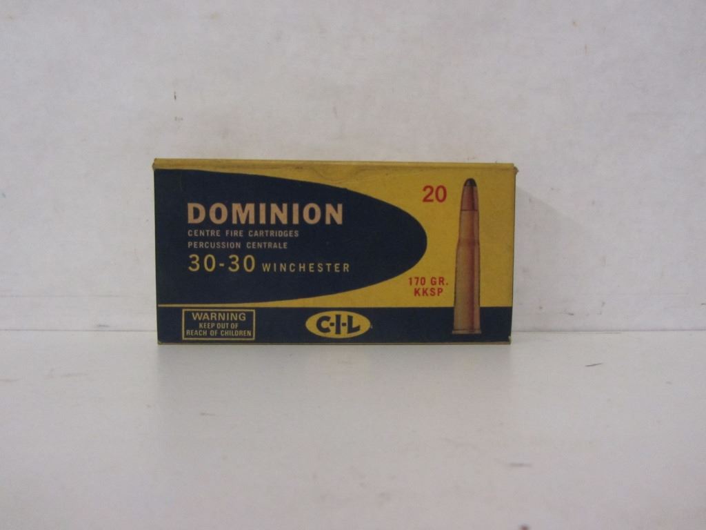 9 ROUNDS OF 30-30 WINCHESTER 170GR KKSP IN C-I-L DOMINION BOX. NO BRASS