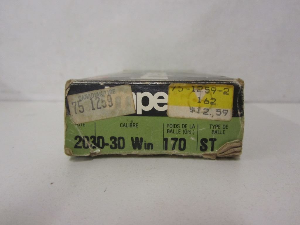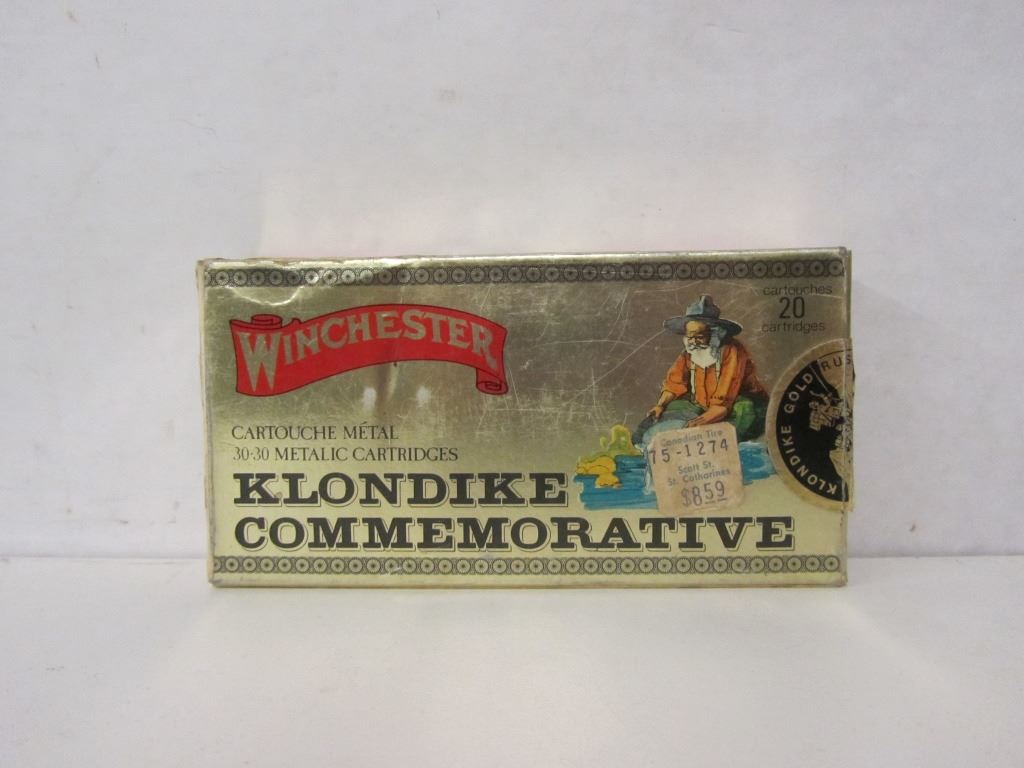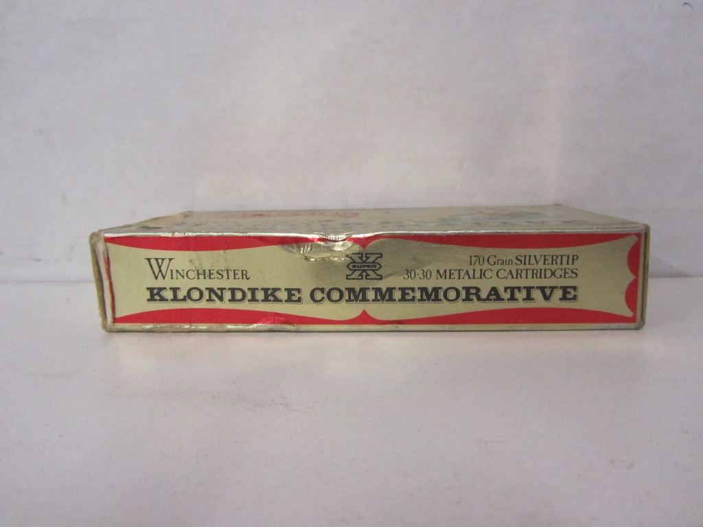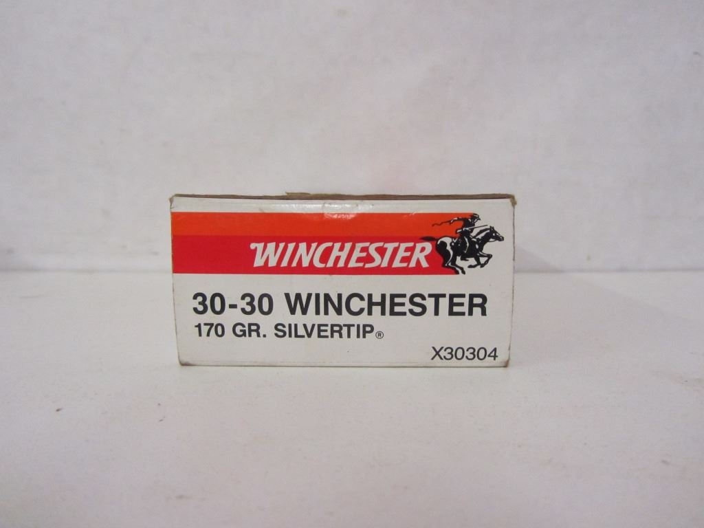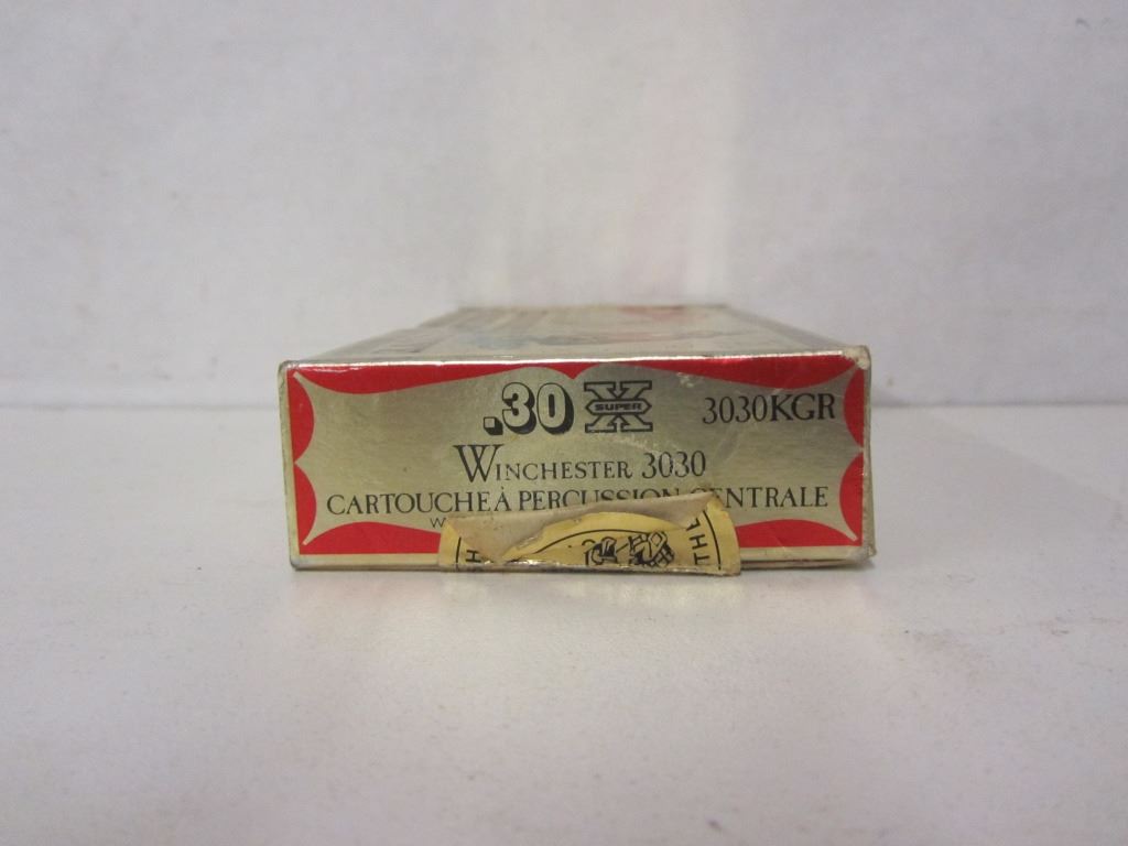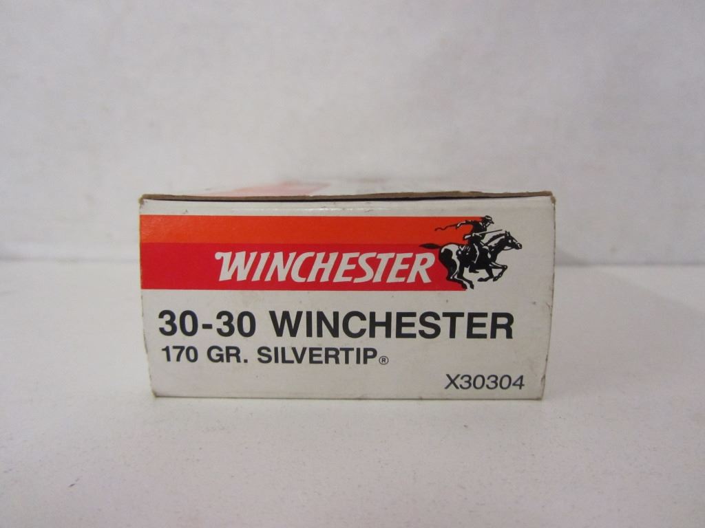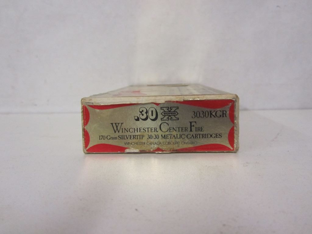 ONE BOX OF WINCHESTER SUPER-X 30-30WIN170GR SILVERTIP WITH 13 ROUNDS, ONE BOX OF IMPERIAL 30-30WIN WITH 10 ROUNDS, ONE BOX OF WINCHESTER KLONDIKE COMMEMORATIVE 30-30WIN WITH 11 ROUNDS AND ONE PIECE OF BRASS.