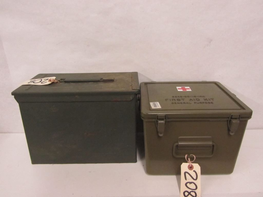 ONE AMMO CAN AND ONE FIRST AID CAN (NO CONTENTS)