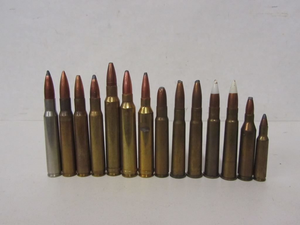 FOUR ROUNDS OF 30-06 SPRING, ONE ROUND OF 8MM REM MAG, ONE ROUND OF 222 REM, ONE ROUND OF 243 REM, ONE ROUND OF 300 WIN MAG, ONE ROUND OF 7MM REM MAG, ONE ROUND OF 8MM, ONE ROUND OF 8MM MAUSER, FOUR ROUNDS OF 303 BRITISH.