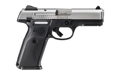 Ruger, SR40, Centerfire Pistol, 40 S& W, 4.1" Barrel, Brushed Stainless Finish, Stainless Steel Slide, Black Nylon Frame, Adjustable 3-Dot Sights, 15Rd