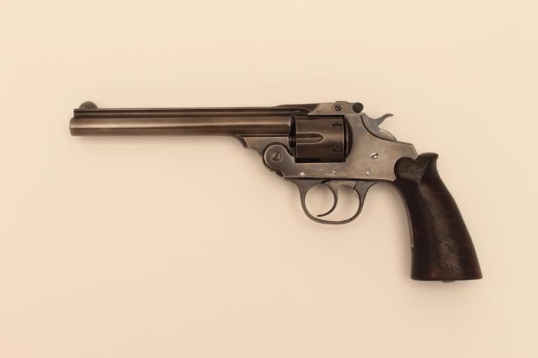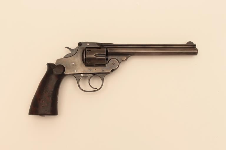 Iver Johnson .32 S&W Long Caliber double action target style revolver with a 6” barrel and target grips, S/N 33674. Good overall. Works well. The bore is bright. (C&R/No PPT) Est.: $150-$300