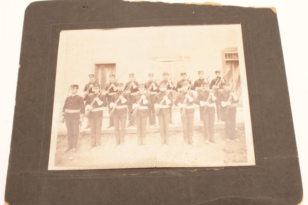 Large cabinet size photo (6 ½” x 8 ½”) of U.S. Military unit holding Springfield Krag carbines. Turn of the century (1902). Minor damage but image good. Est.: $75-$150