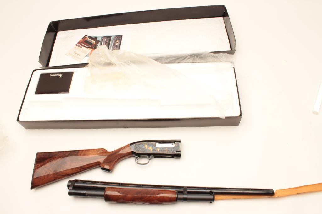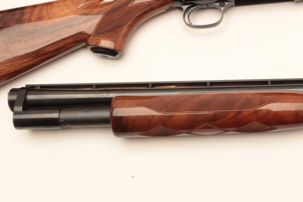 Browning Model 12 pump action shotgun Grade V. Desirable 28 ga. with 26" bbl, mod choke, #00283nm972. Excellent to almost new in box. 99-100% factory specs. No evidence of firing or use. Est:$1250-2500