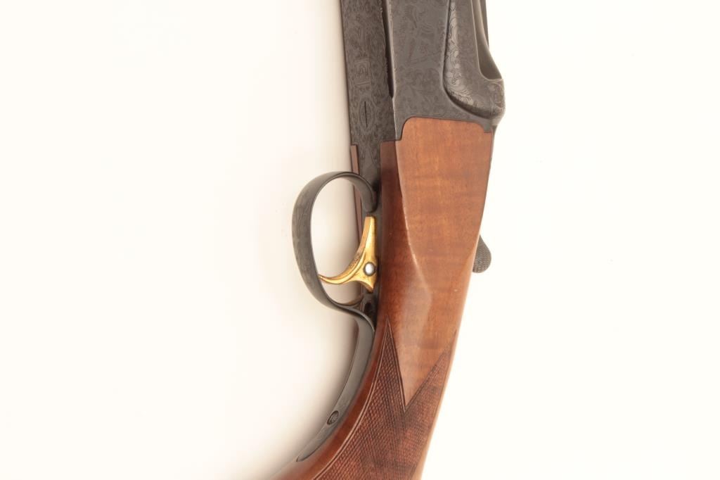 Ithaca model 500 12GA O+U shotgun with 28’’ BBLs, single trigger, auto ejector, hand rubber pad, fine to almost excellent condition serial #S5548602. Est:$400-800