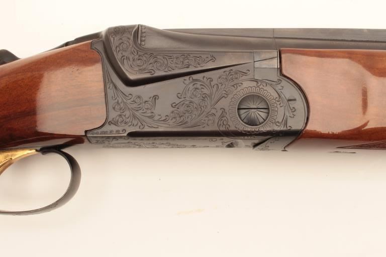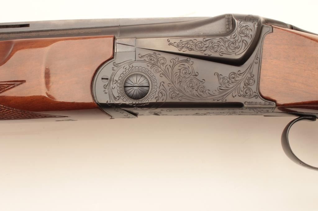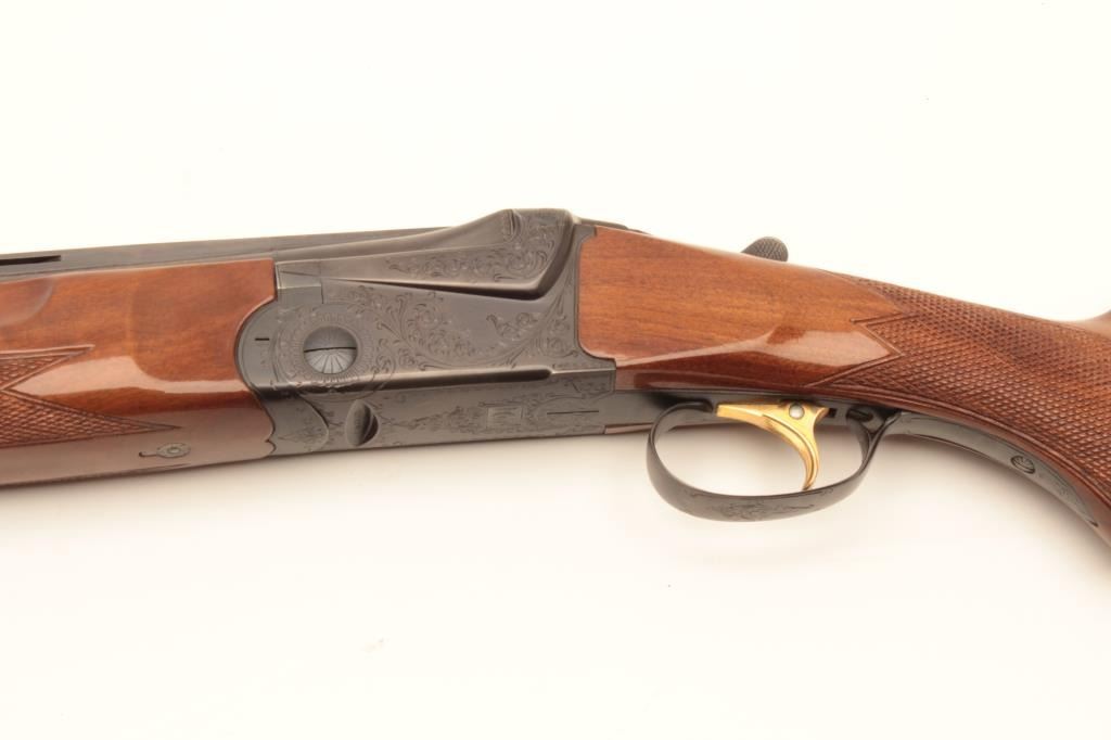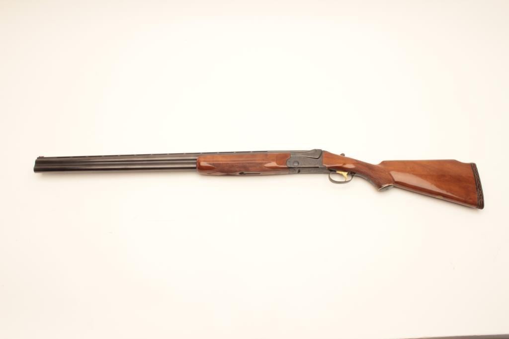Ithaca 500 12GA O+U shotgun, #CM619311 30” BBLs, S.T. auto eject, 14 ½ inch to end of pad, full over IMP- modified, very good condition, pad needs replacement. Est:$400-800