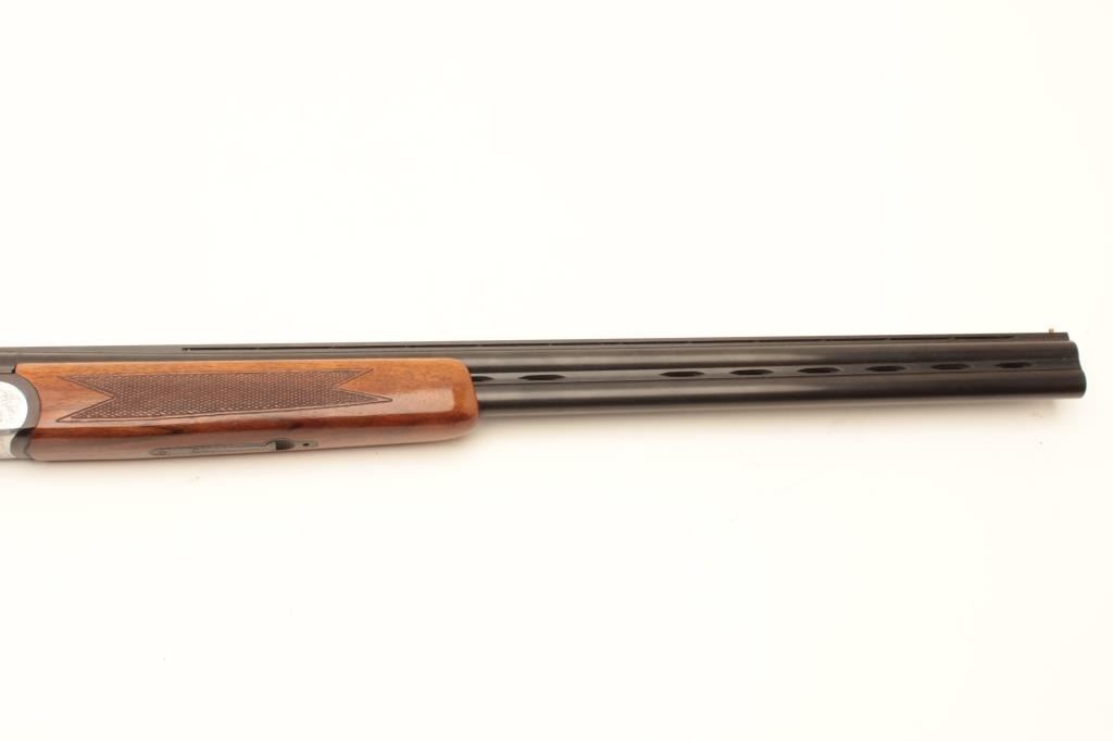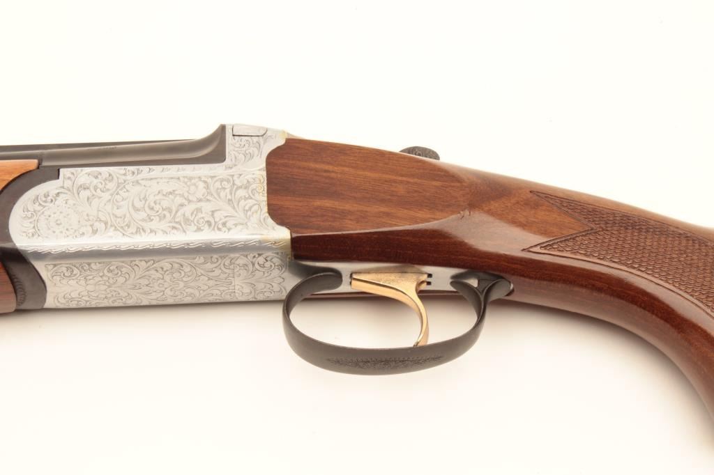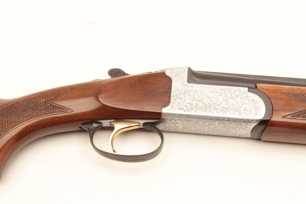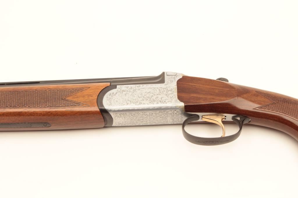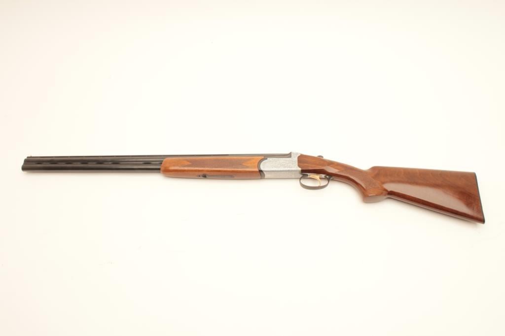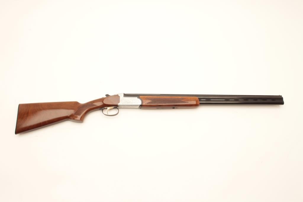 A Zoli- Italy 20GA O+U shotgun w/ 26” BBL, choked full and full single trigger, standard extractors, 14” to end of plate. Excellent to new in box. 30 plus years old. Est;$350-700