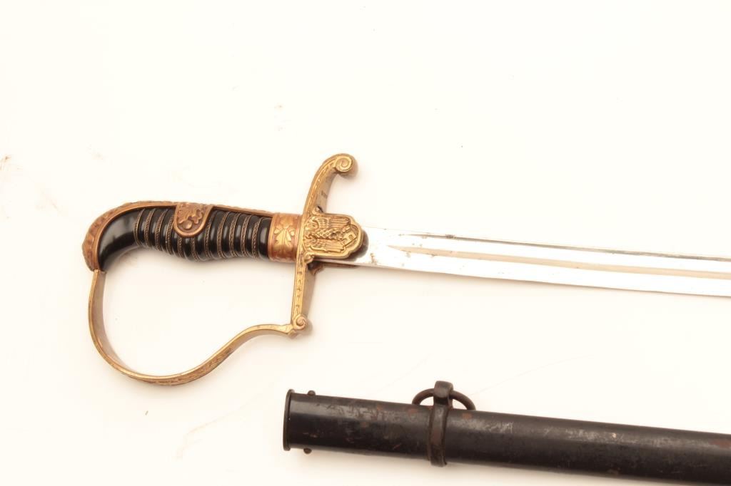 Authentic WWII German Nazi Era Army Officer's Sword by Eikhorn of Solingen with scabbard, very good plus. A few areas of spotting on blade. Est:$150-300