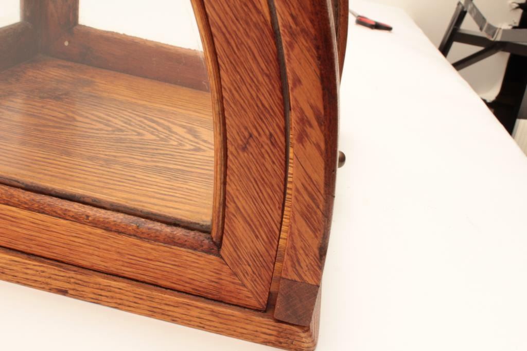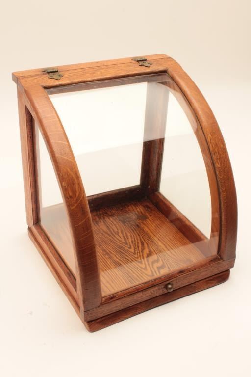 Antique Oak Showcase with Bow Front of small and desirable size, 15 height by 13 ½. Very good to near excellent condition. Est:$350-700