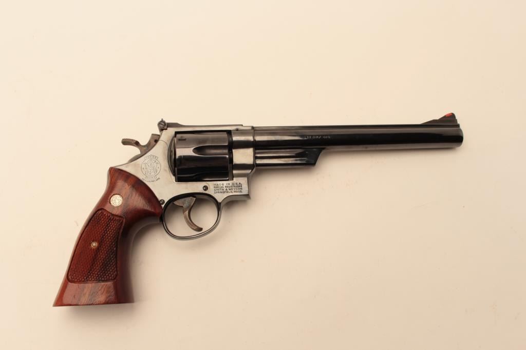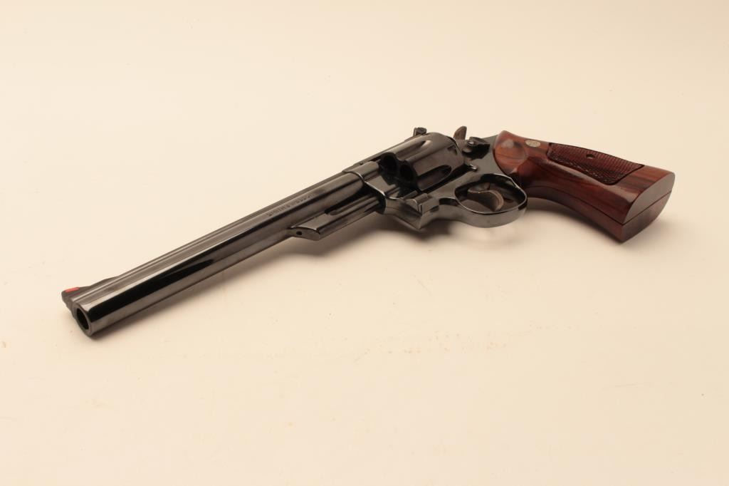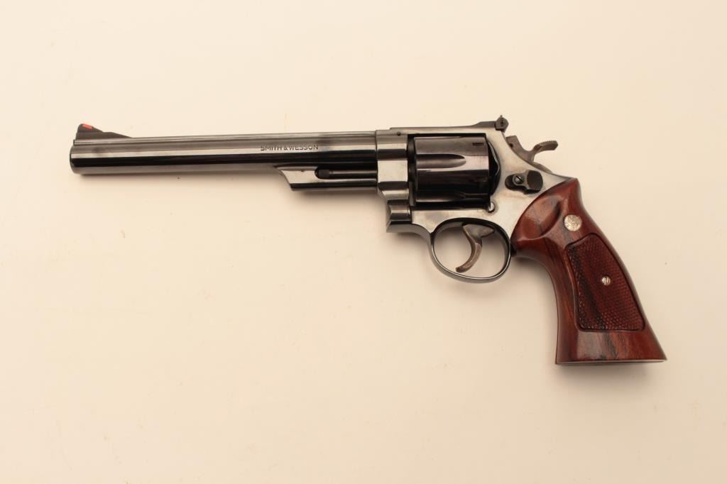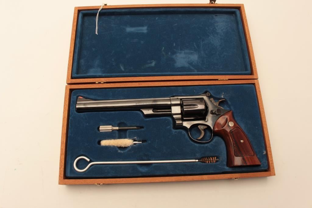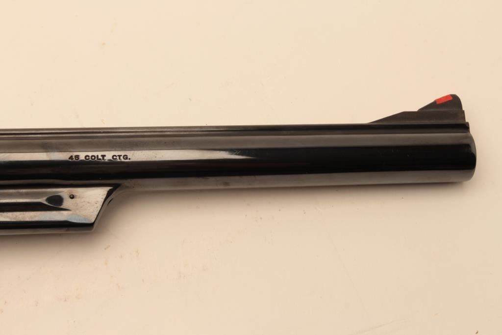 Smith and Wesson model 25-5 DA 45 long colt DA revolver with 8 3/8inch BBL, target features, #N660613, with Smith and Wesson presentation case and paperwork. Gun almost good to fine used condition with 95-98%original blue, slight losses and minor index, some firing and use. NO CA SALE. EST;$700-1400