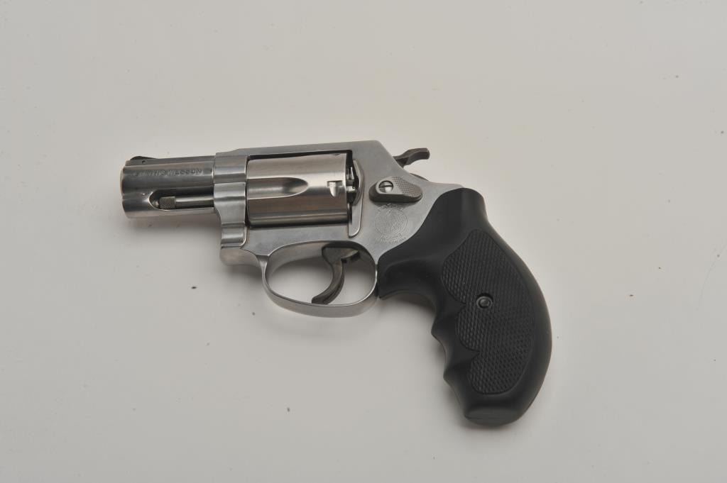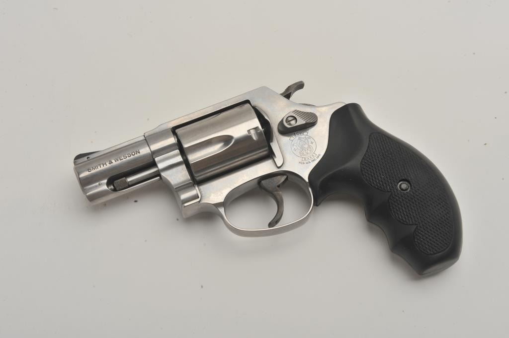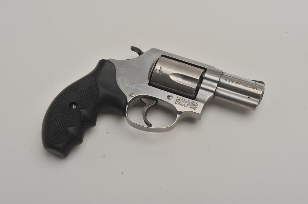 Smith and Wesson model 60, 357 magnum, 2 1/8 BBL, stainless steel revolver with finger groove neoprene grips, #CCF9341 engraved “Catherine” in script on right side special order code 7273 excellent in box. (PPT).EST:$275-550