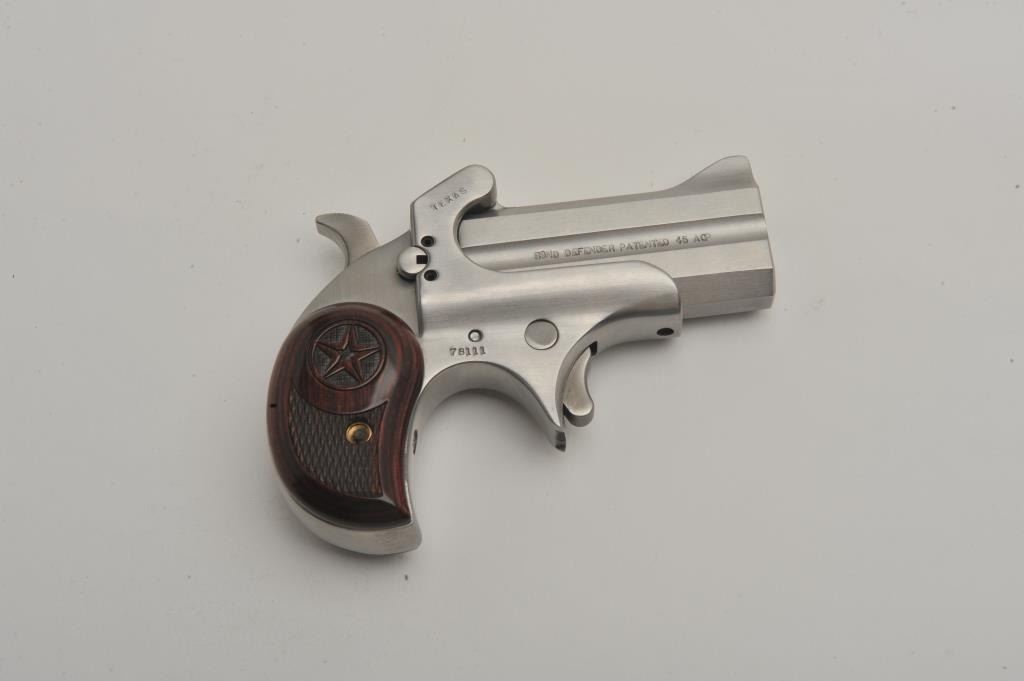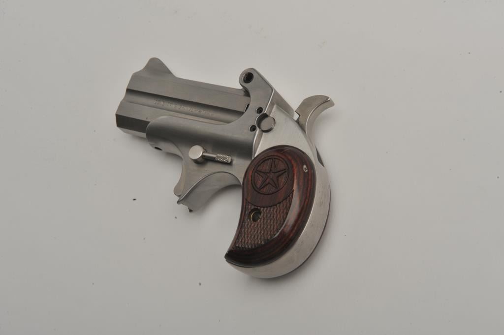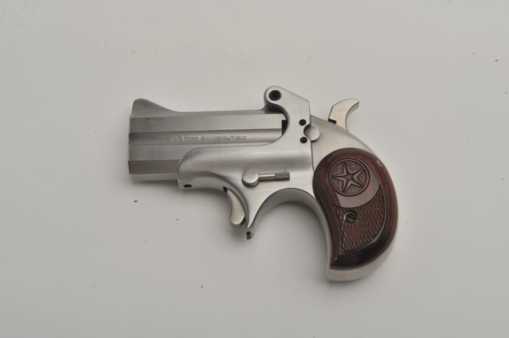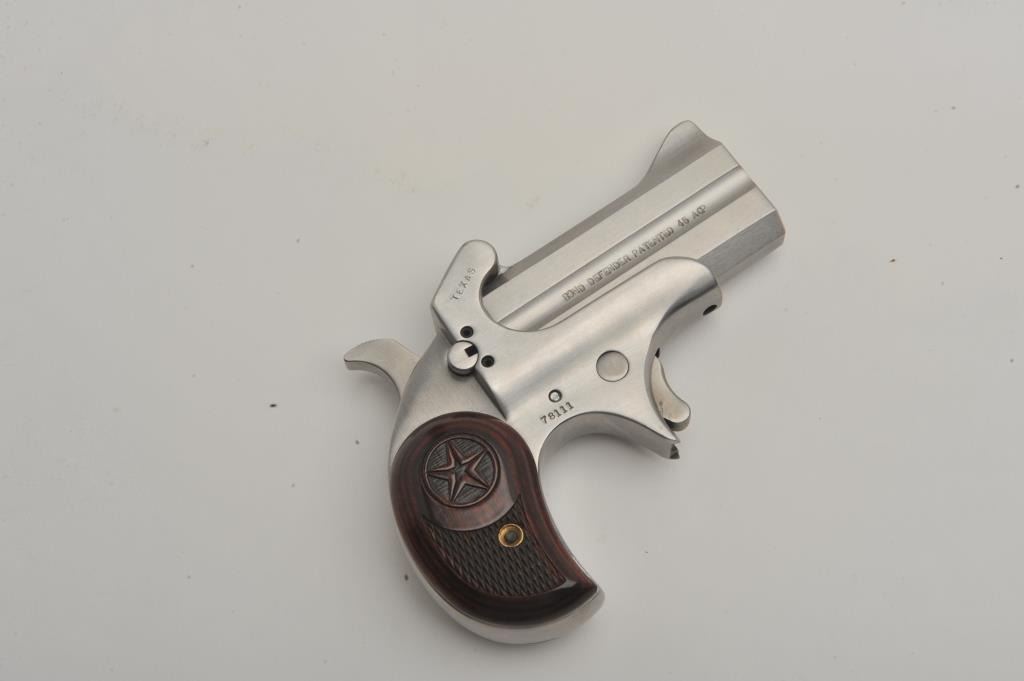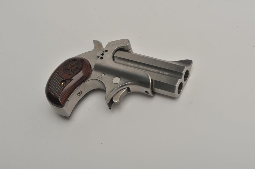 Bond Arms Texas Derringer in 45 acp, stainless steel 45 acp, #78111. Excellent plus used condition. Est;:$200-400