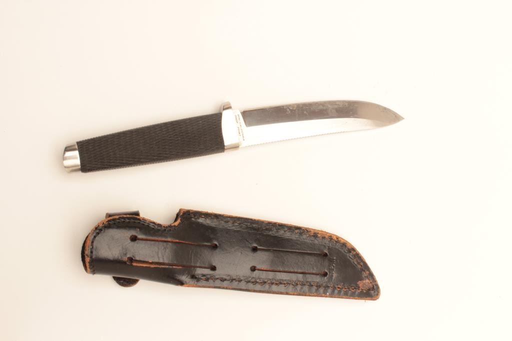 Cold Steel Japan made Mint, California drop point. Sharpened in good condition overall. 4” Blade and 8” overall. Est:$150-200