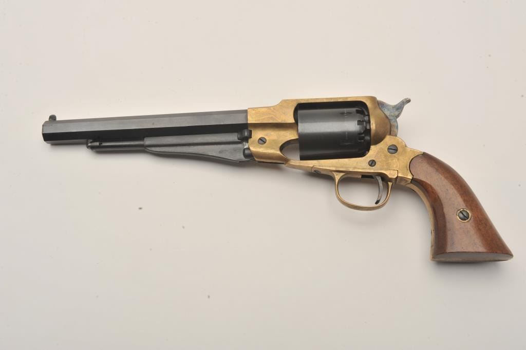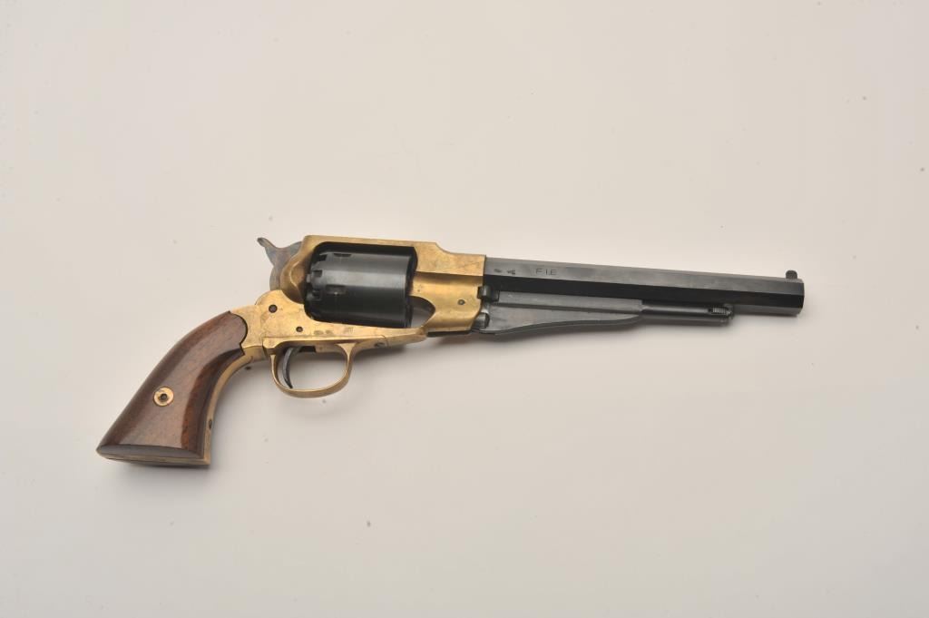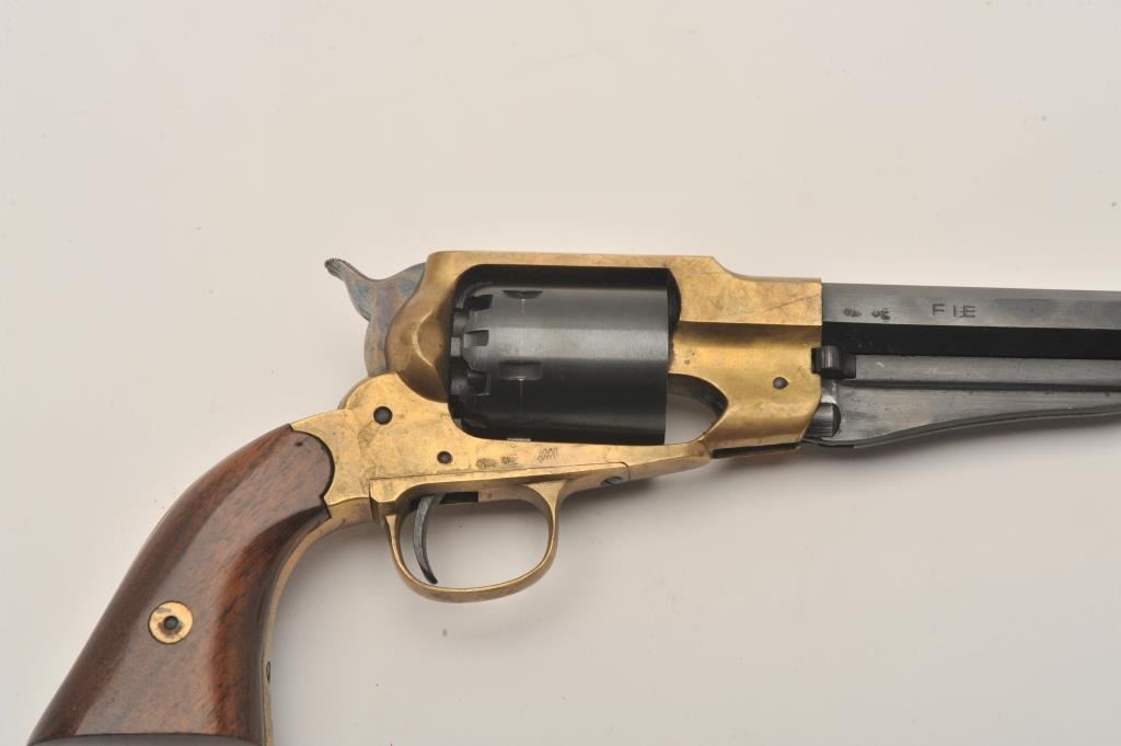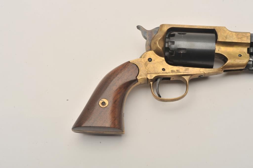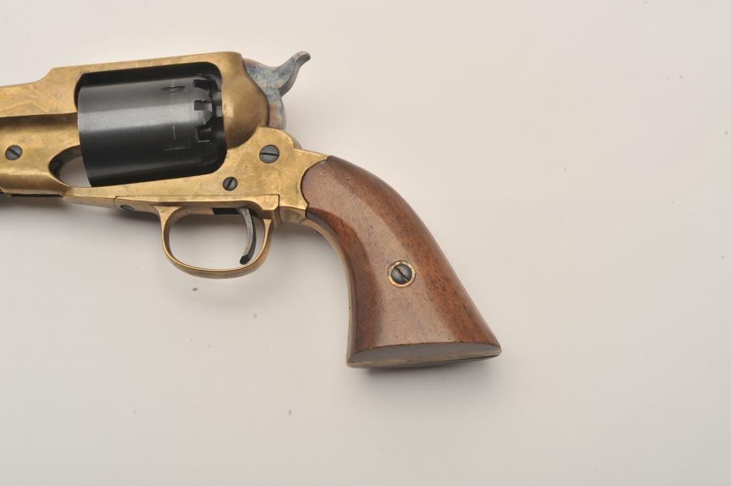 Confederate civil war style brass frame 44 caliber revolver by F.I.E #086 older Italian made, near fine condition. Est:$150-300