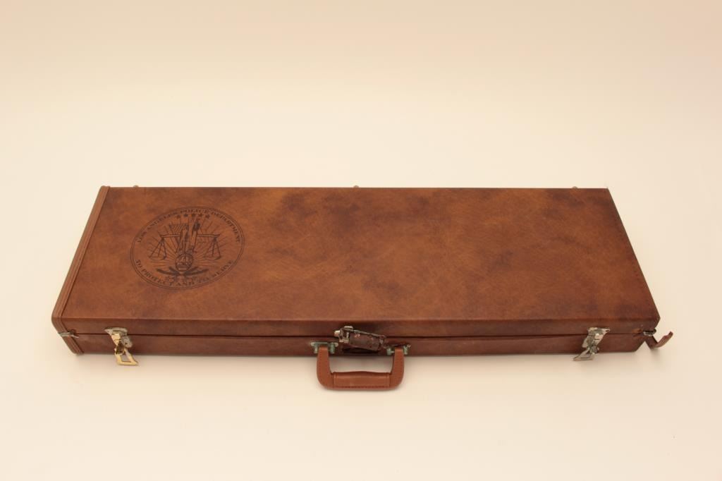 Ithaca L.A.P.D. Commemorative model 37, 12 ga. 2 bbl Comm. set in case. Patrick Wayne Collection with documentation. Fair to poor condition from poor storage, rust. wood damaged. Est:$350-700