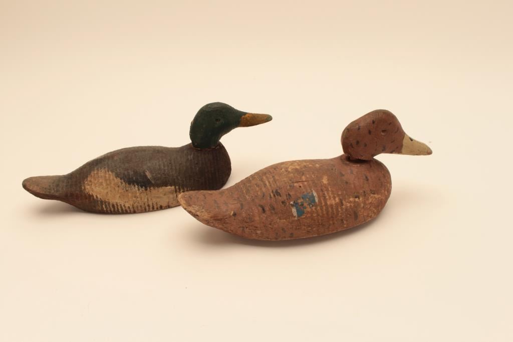 Lot of 2 Antique American Carved Duck Decoys, pre-war. 1 eye missing, fair to good condition. Est:$150-300
