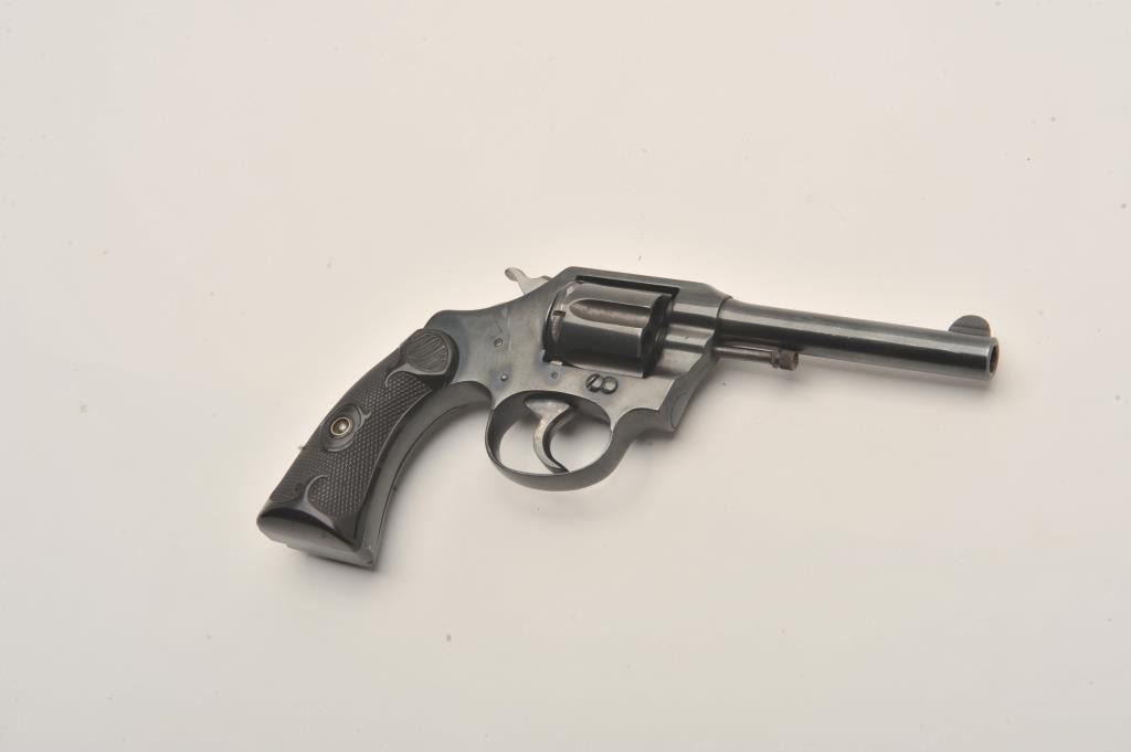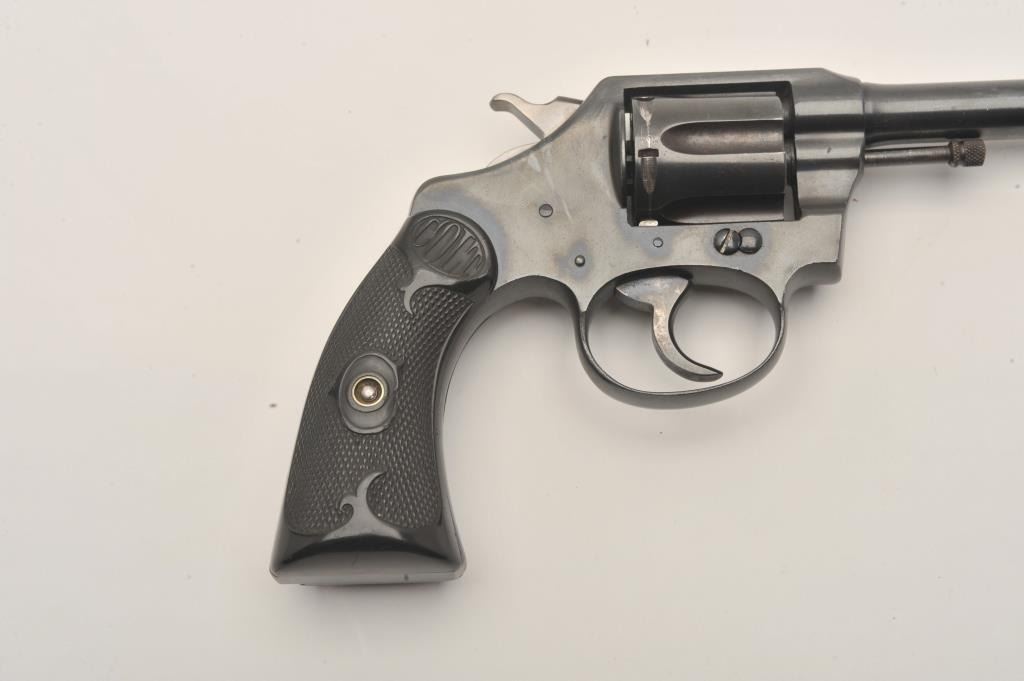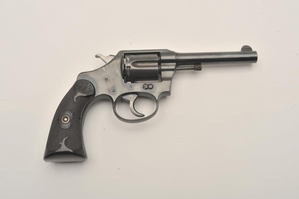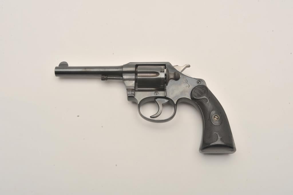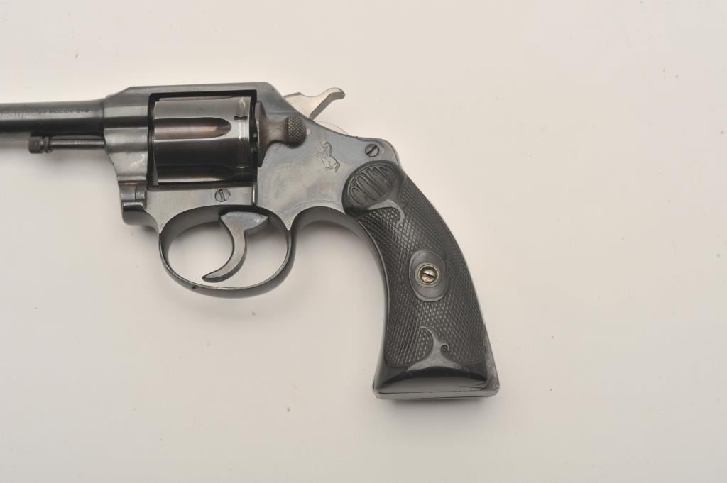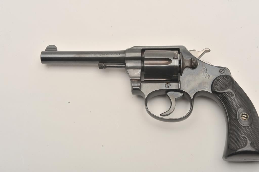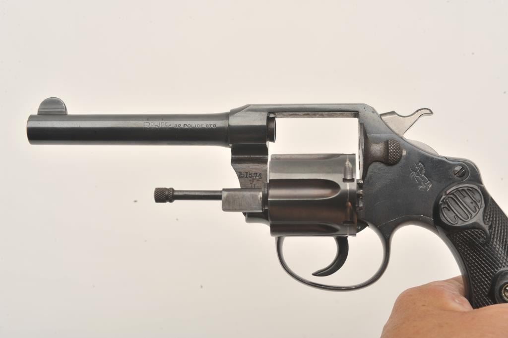 Colt Police Positive .32 n.p. cal. D.A. Revolver, with 4" bbl, circa 1919, #151574. Old good quality refinish. Grip chipped, good action and bright bore. Est:$175-350