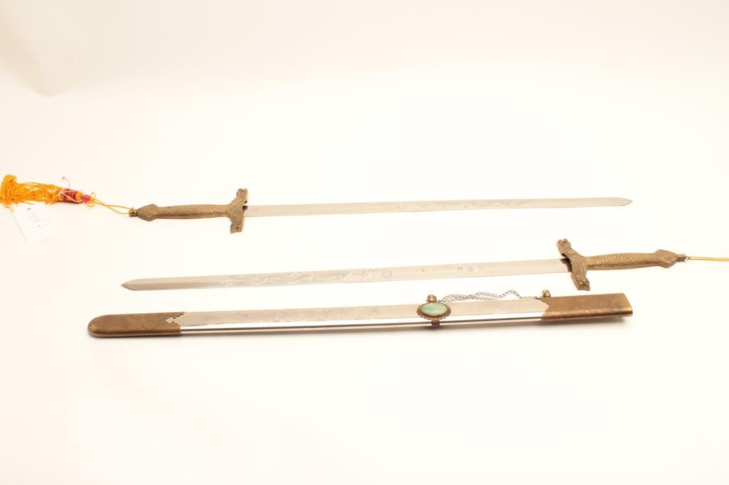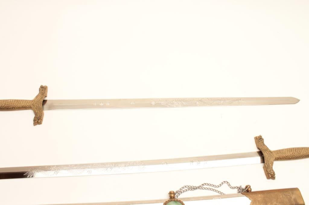 Chinese 20th century Ceremonial 2 blade, sword with simulated Jade stone inlays. Est:$100-200
