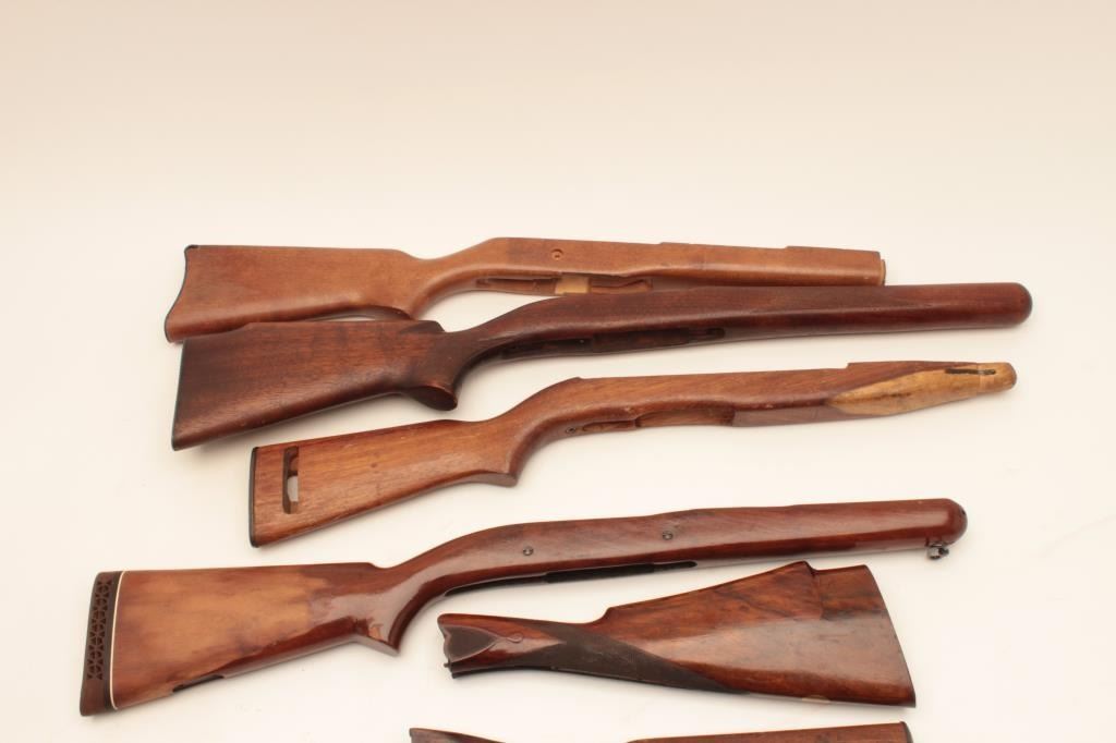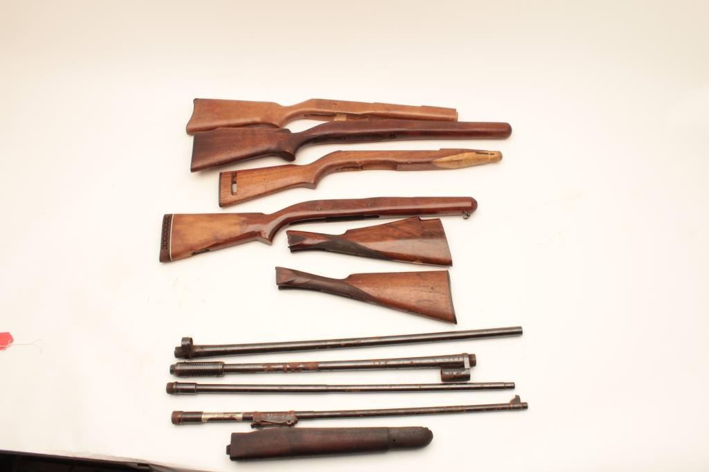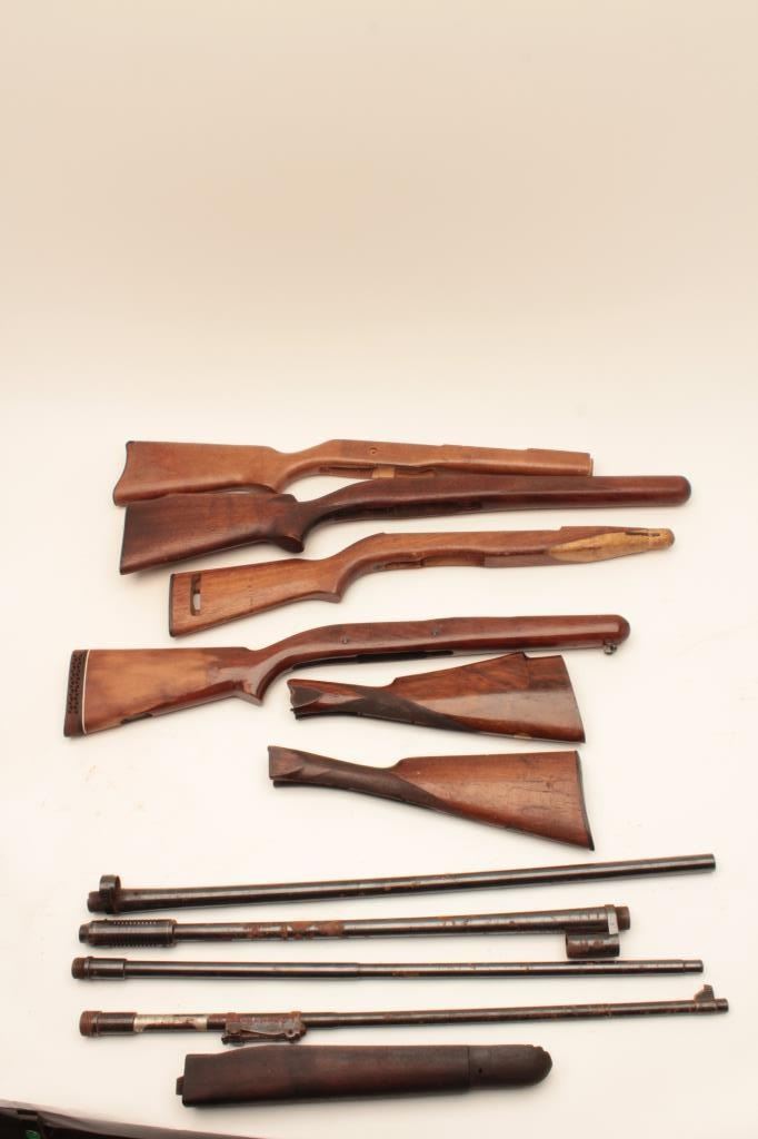 Lot of stocks, various conditions and 1 shotgun and 3 rifle barrels. Est:$100-200