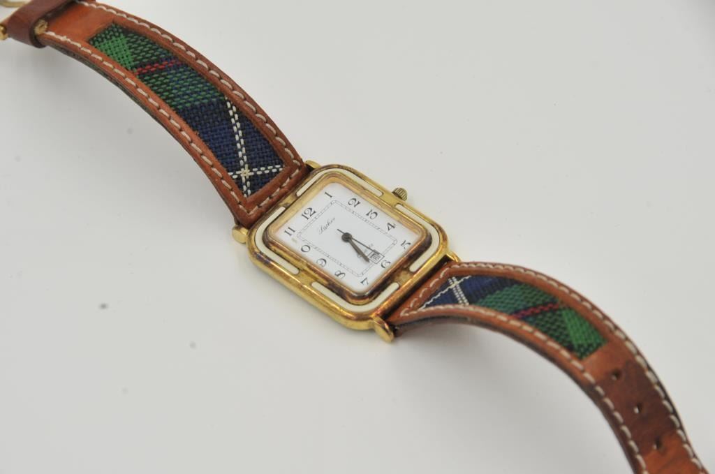 Lacher Tank style watch, quartz movement date window. NEEDS battery, in overall good condition. Made West Germany and a good name. Est:$100-300