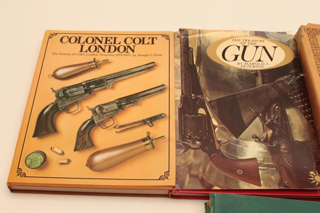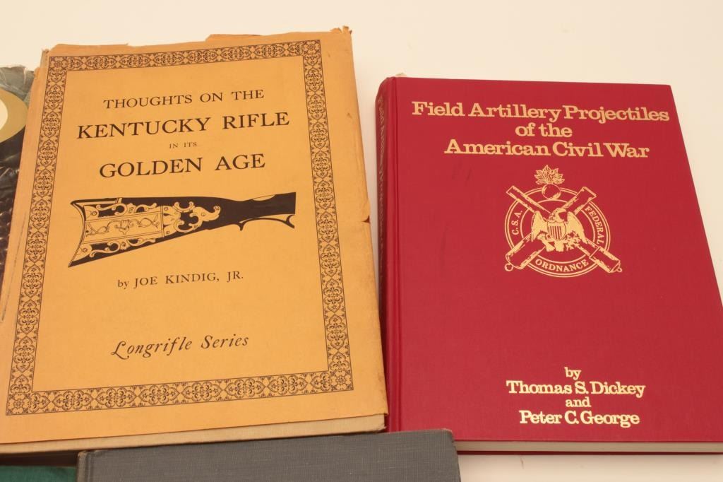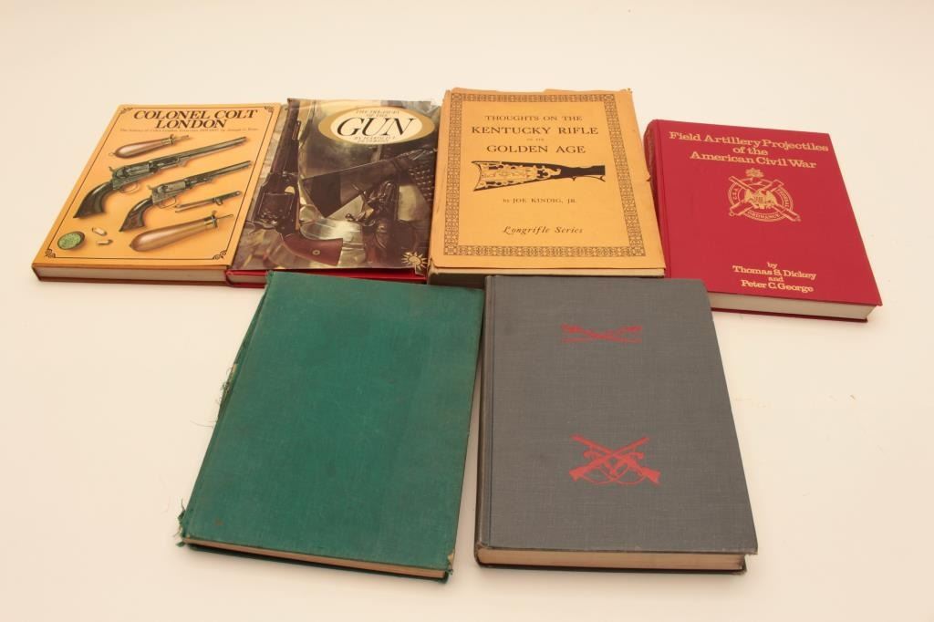 BOOK LOT 1- The flintlock (Blank Green cover) 2- Small arms makers by Colonel Robert E Gardner 3- Thoughts on the Kentucky rifle in itsGolden Age by Joe Kindig Jr 4- Field Artillery projectiles of the American Civil War by Thomas S Dickey 5- Colonel Colt London by Joseph G Rosa 6- The treasury of the Gun by Harold L.Peterson Est;$150-300