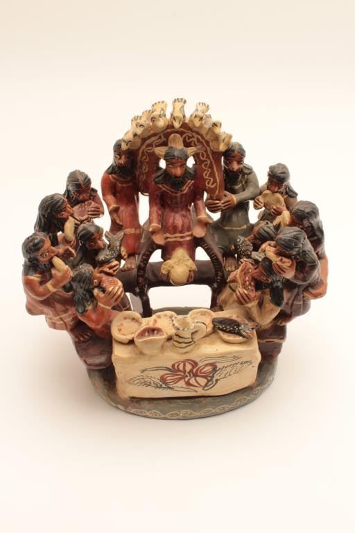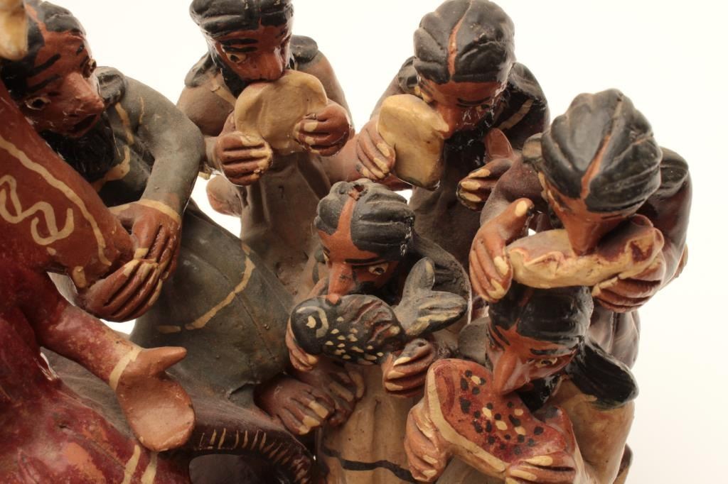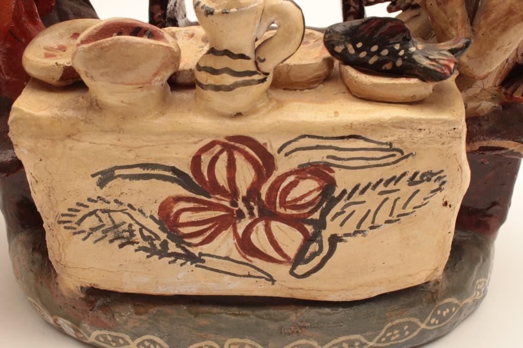 Mexican Primitive Folk art pottery grouping of last supper by Antoni Martine Albarez. According to this piece was in an art show and won. 13x13 “. Est:$300-600