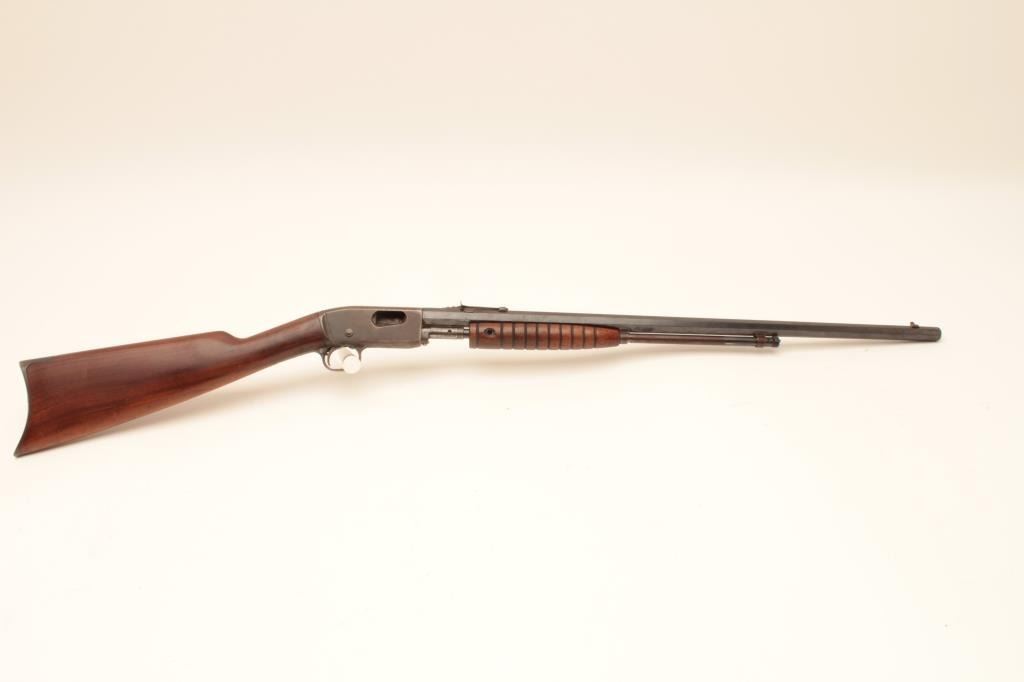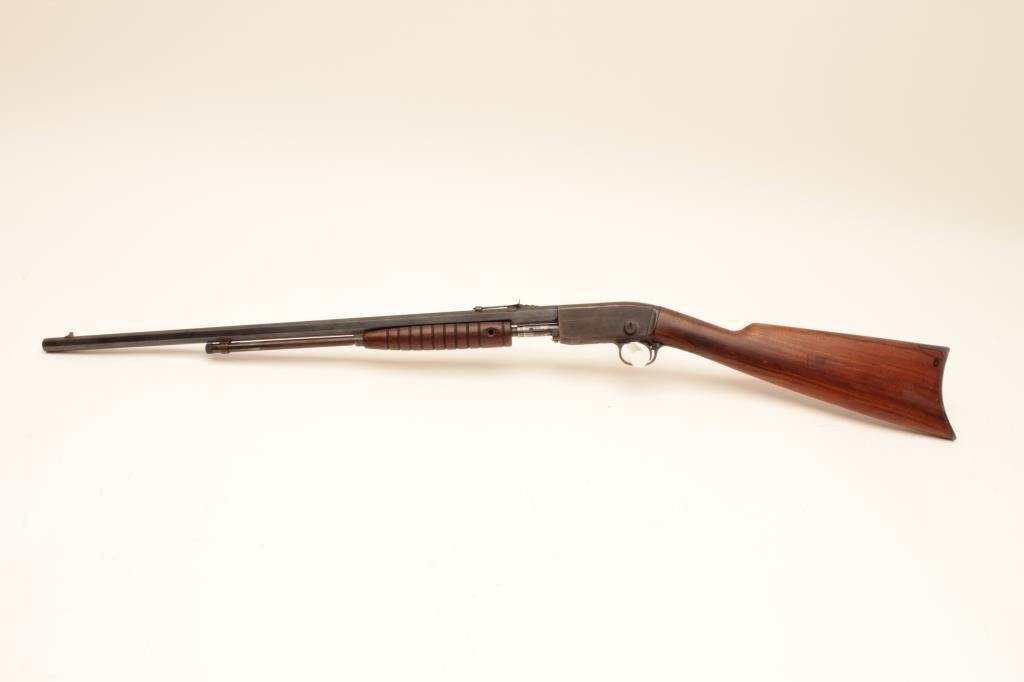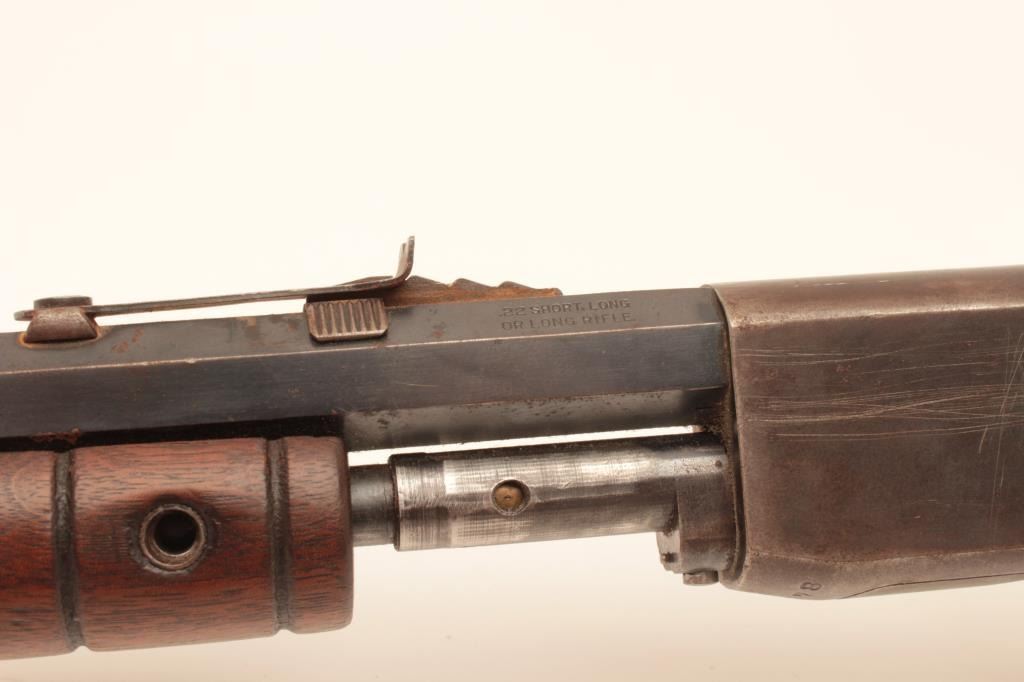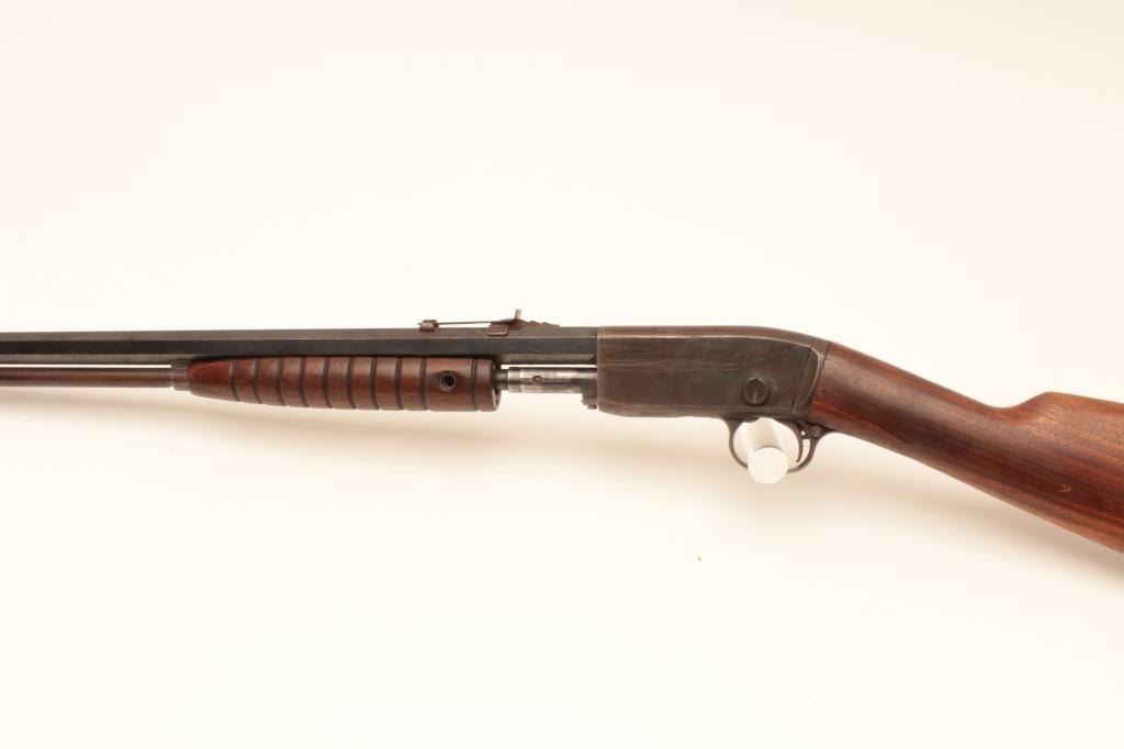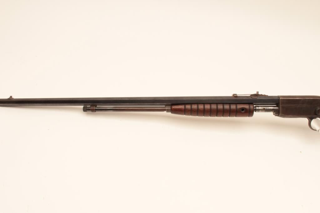 Remington Mdl 12C pump action, .22 S., l, lr with octagon bbl. #309078, 50-70% blue, light rust, wood cleaned with steelwool lightly, sound mechanically. bore rusty but may clean. Missing forend screw and needingminor repair. #309078. Est:$100-200