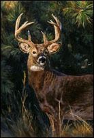 JUST ADDED: Linda Besse's "Center Stage", a framed, original oil painting, measuring 18"x12". Like most wildlife artists, Linda was enchanted with animals at an early age. It was vivid childhood memories of her great-uncle and his African hunting stories which gave her an immediate sense of the adventure one experiences when exploring wild animals and places. Linda was drawn to the outdoors through her geology bachelor's degree from Colgate University, followed with a Master of Science degree which enabled her to get into the back country of Alaska, Nevada, Wyoming, Utah, and Montana. Linda works from her field sketches, small field paintings and her photographs to create a composition designed to reflect the inherent artistry of nature. Painting exclusively in oil because she likes its luminosity, depth, and intensity of color, Linda uses a mostly wet-on-wet technique to capture the immediacy of the image. She lives in the country surrounded by deer, wild turkey, grouse, quail, coyote, and the occasional moose, bear, and mountain lion. Here's what Linda had to say about this piece: "Living in the country, we have whitetail visit us every day. The chance encounter with a buck brings added excitement. This buck almost seems to be grabbing the spotlight on center stage."