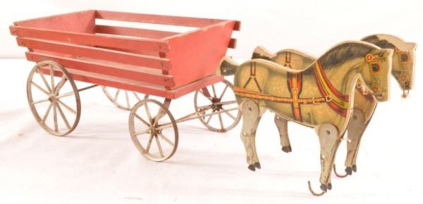 Lot 230 Antique Horse Drawn Wagon Toy