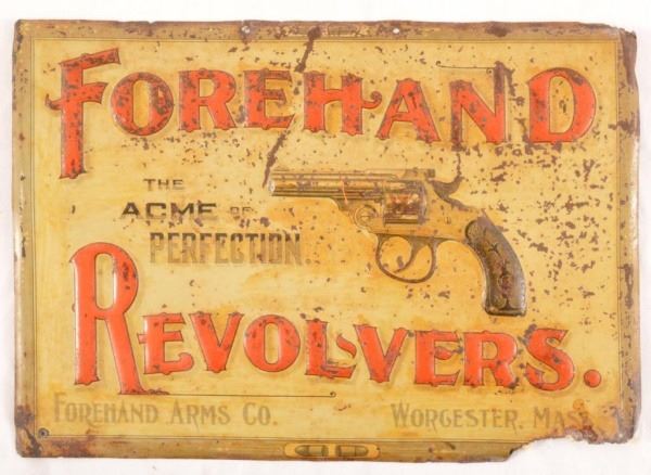Lot 233 Forehand Revolvers Antique Embossed Tin Sign
