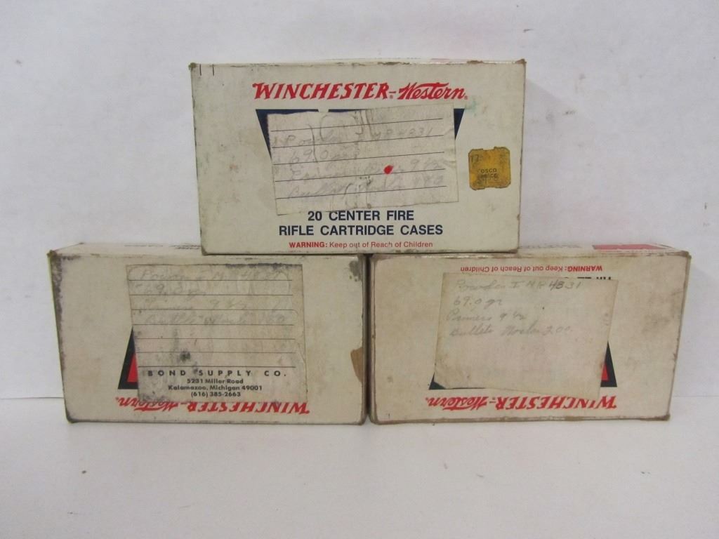 ONE 20 ROUND BOX OF WINCHESTER 300 WIN MAG 200GR BULLETS, ONE 20 ROUND BOX OF WINCHESTER 300 WIN MAG 180GR BULLETS, ONE BOX OF WINCHESTER 300 WIN MAG 180GR BULLETS WITH 5 PIECES OF ONCE FIRED BRASS AND 15 LIVE ROUNDS.