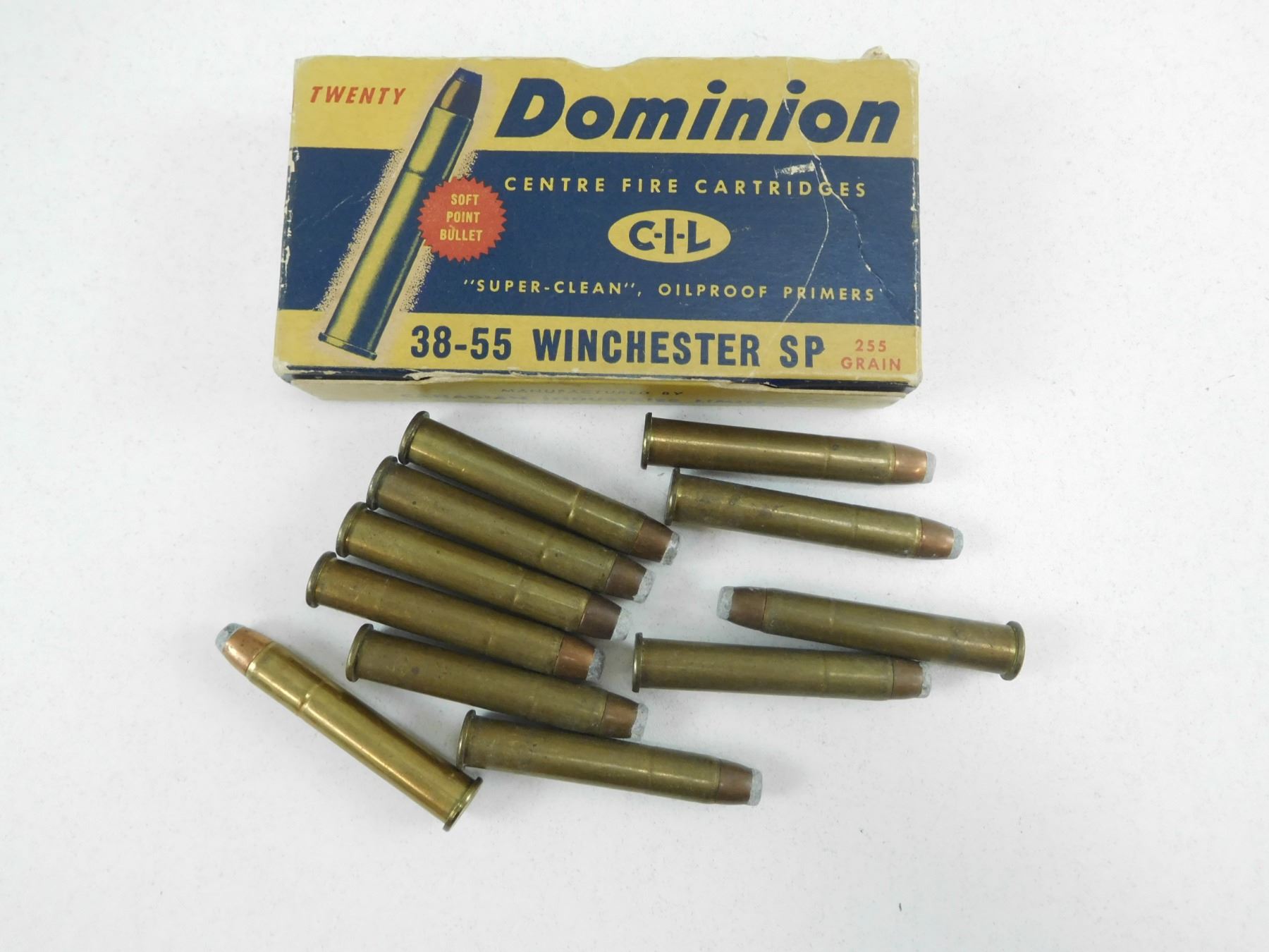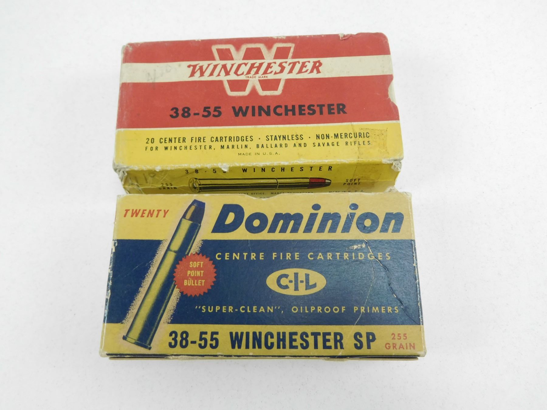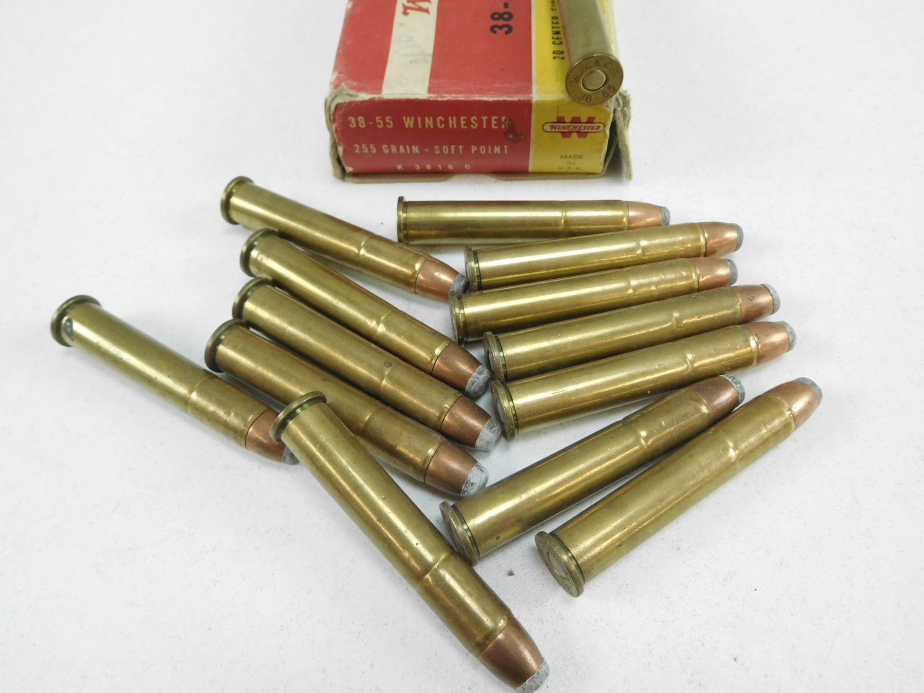 ASSORTED 38-55 AMMO , 25 RNDS INCLUDES DOMINION 255 GRAIN SP, & WINCHESTER255 GRAIN SP